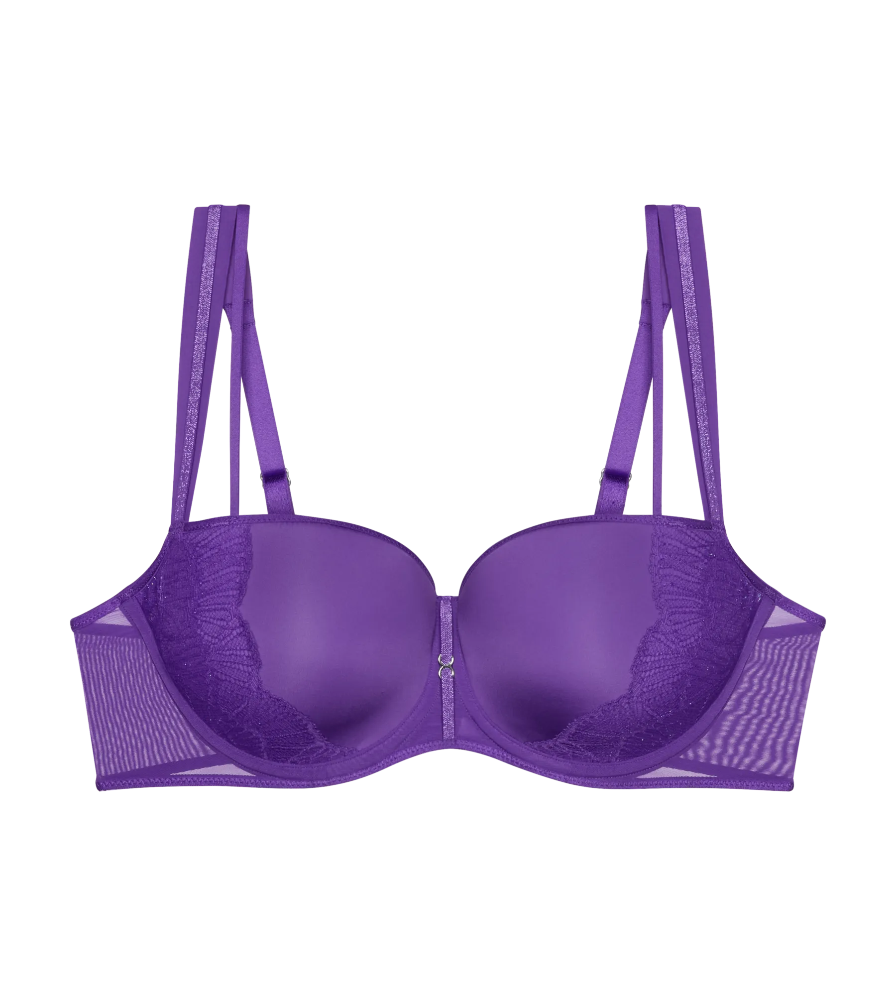 Csipkével és árnyalatokban játszó lurexszel a csipetnyi ragyogásért. A könnyű párnázás és a légáteresztő technológiás kosarak kellemes emelést és tartást nyújtanak, különösen a nagyobb keblek esetében.